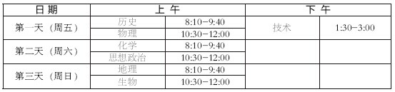 学业水平考试各科分值为:语文、数学各100分,外语150分,思想政治、历史、地理、物理、化学、生物、技术各70分。评卷由省教育考试院统一组织。