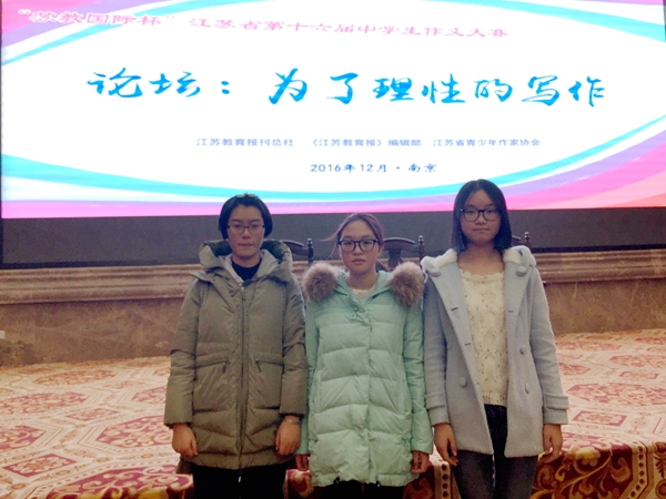 第十六届中学生作文大赛分为高中组和初中组。高中组今年9月发布初赛题《风景》和《我�自己�我们》,该校组织高一、高二近两百名同学参加初选,由东台市教育局进一步筛选并提交专家评审。经统计,全省约20万名高中学生参加了初赛。大赛组委会经过严格评审,选出大赛获奖作品。其中,东中的沈静雯、朱昱安、杨雨宁、吴子玥等17位同学荣获二等奖,潘宝诣、夏周燕等7位同学获三等奖,倪笑、黄诗雯和钱璨3位同学获得在南京举行的现场决赛资格。