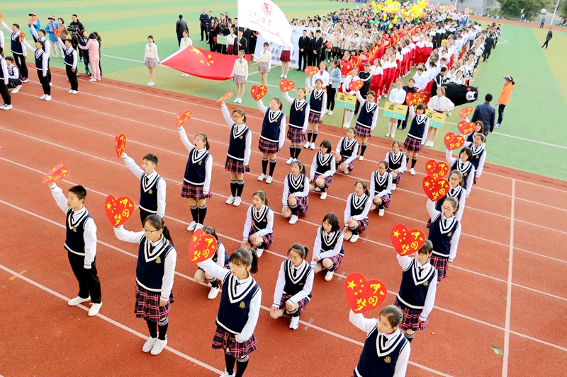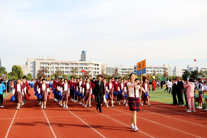 筑梦理想,厚植情操;探究学识,炳发仁爱。当教师方阵入场时,同学们一片欢呼。他们是“另起一行,我是第一”实践者,是“勤能煮海,进可登天”笃行者,更是“立德树人,办人民满意教育”的担当者。此刻,他们已经拉满了弓,蓄好了势,准备着这场秋天的沙场点兵。